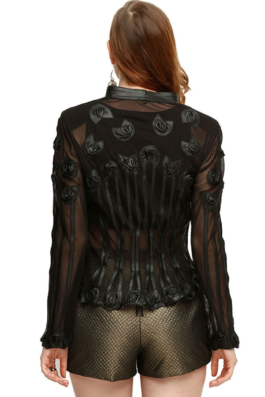 Rosalinda Mesh Jacket - Rose shaped appliqued Leather Pieces
