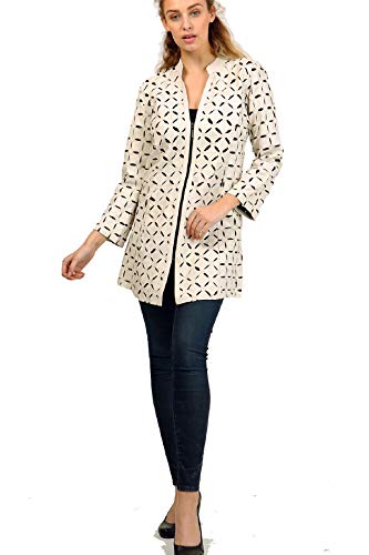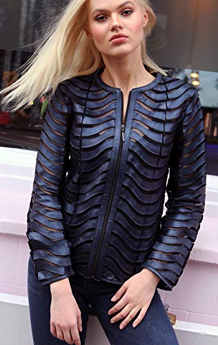 Women's Genuine Lambskin Leather Applique Mesh Jacket Made by Handmade