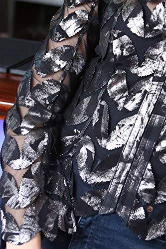 Leaf shaped Leather pieces Appliqued Mesh Jacket Made by Handmade