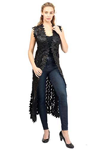 Zamback Leaf Design Handmade Leather Maxi Vest Gilet
